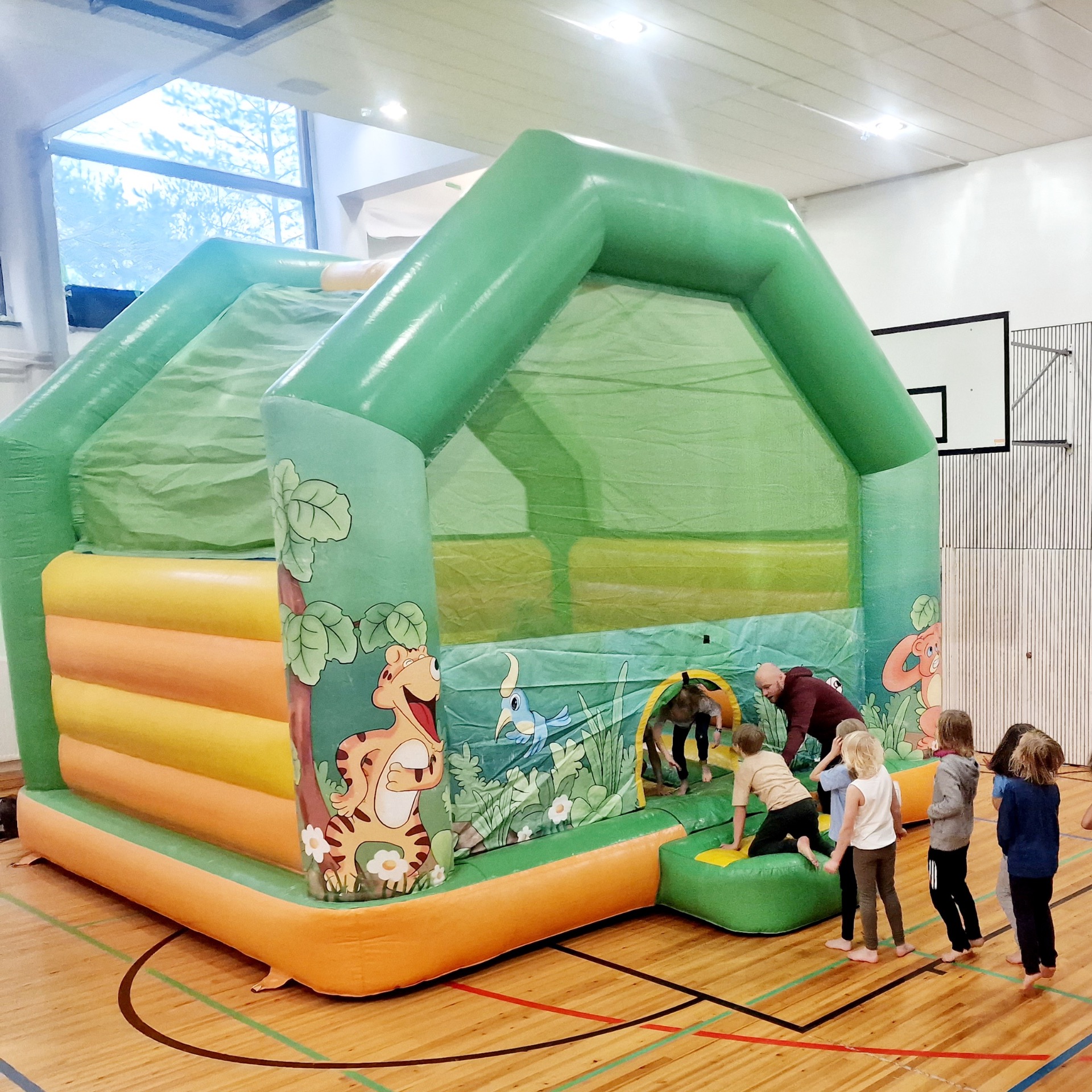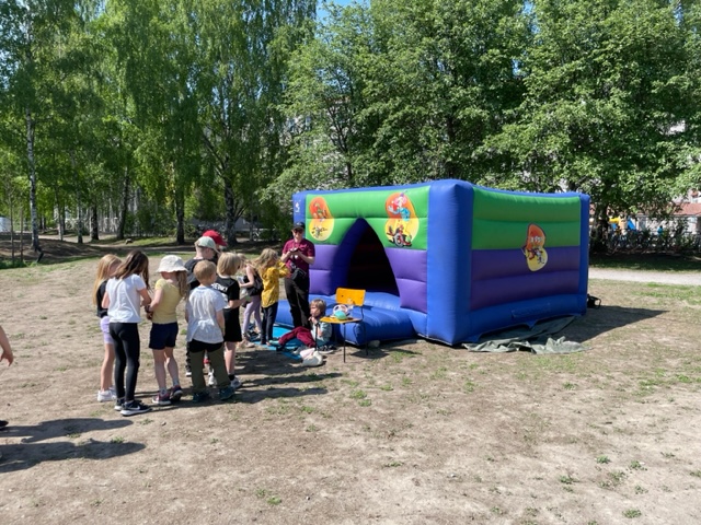 Päiväkoti- ja ala-asteikäisille täydellinen juhlatunnelman nostaja. Matala pomppis joka menee lähes tilaan kuin tilaan.