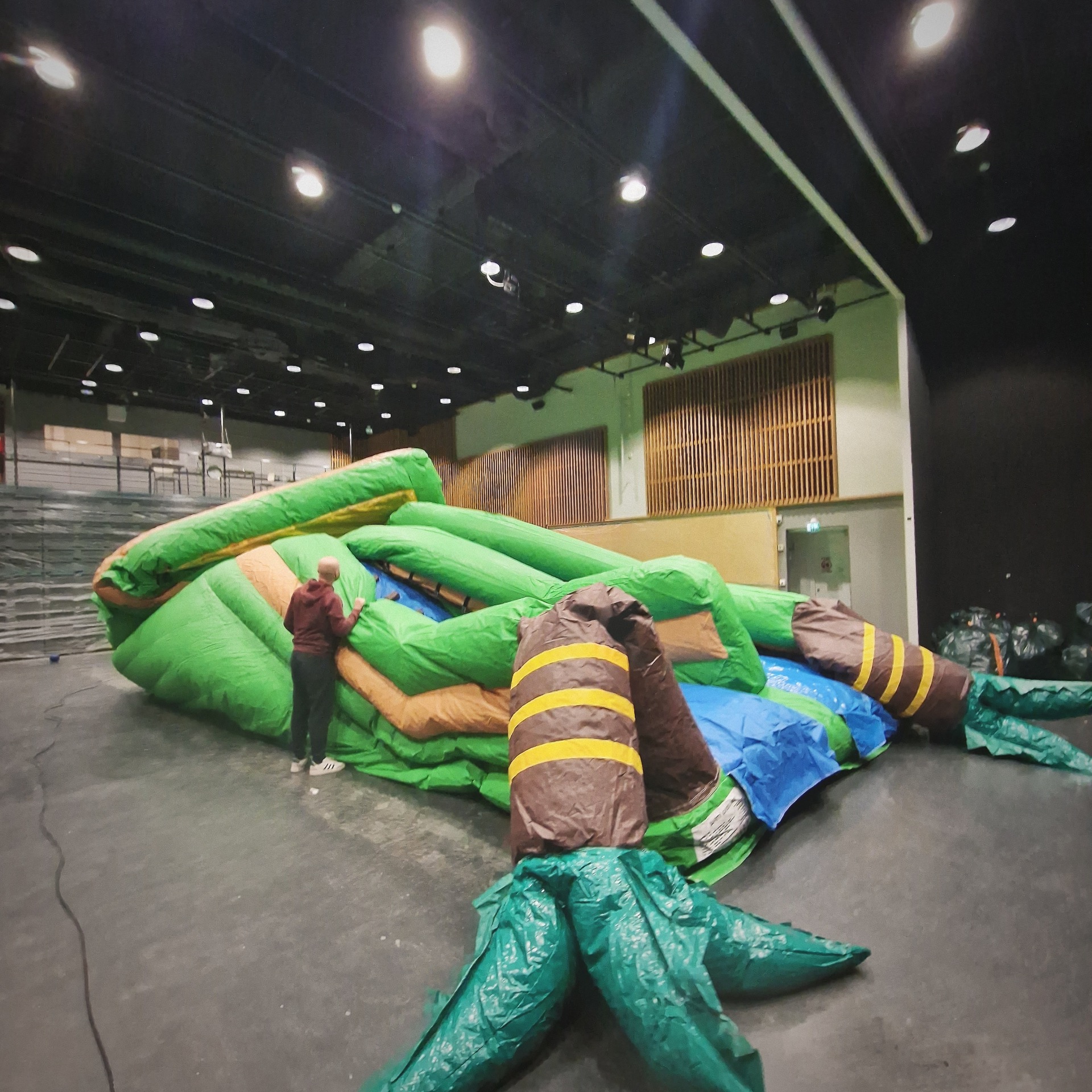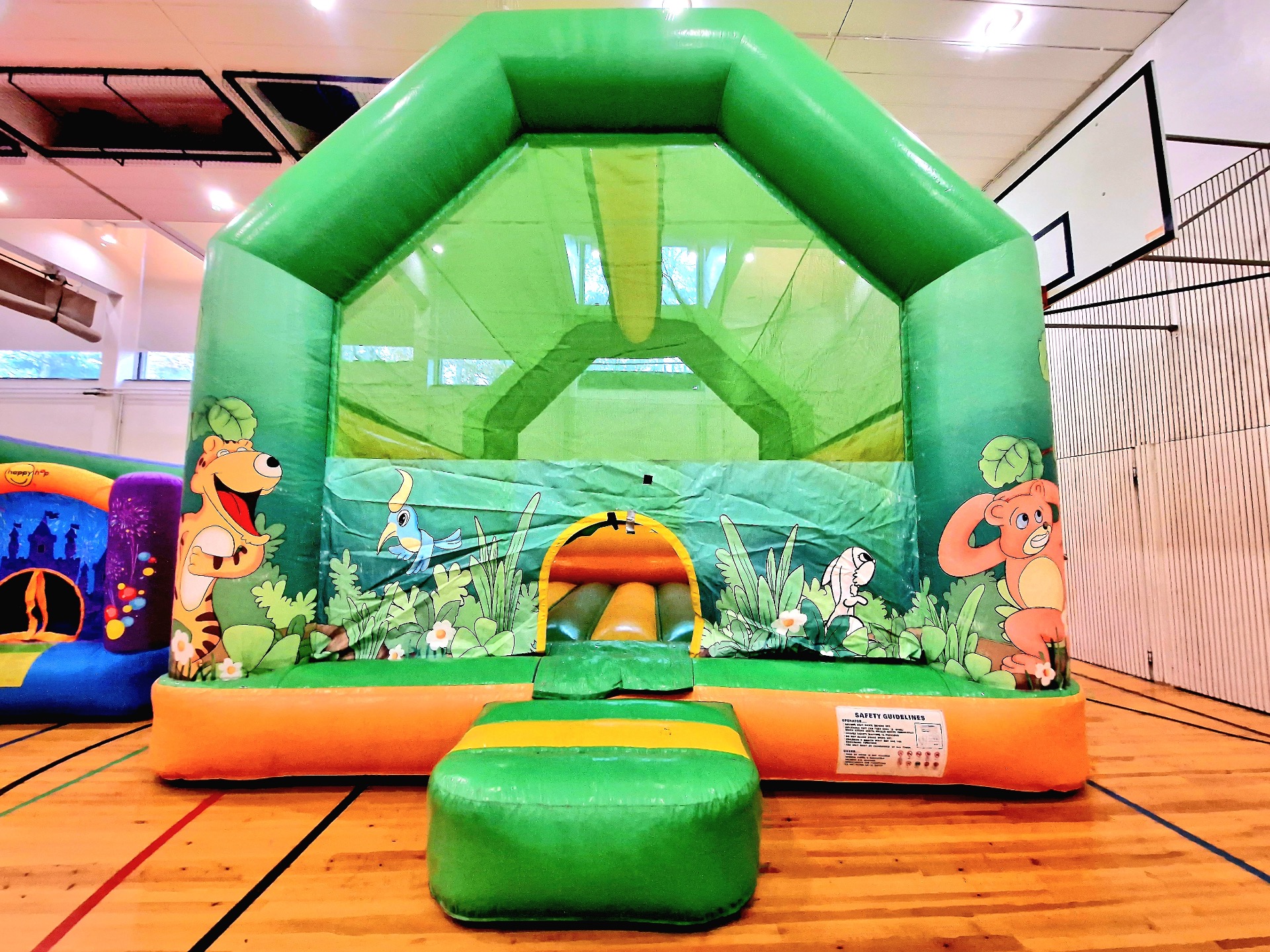 Sopii kaikenikäisille. Kerrallaan mahtuu noin 10 pomppijaa. Koko (L × S × K) 5 × 6 × 5 m + taakse 1,5m putki ja puhallin
